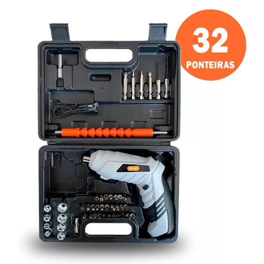 Possui uma maleta para melhor organização do seu produto acompanhando um jogo de pontas com 32 peças.