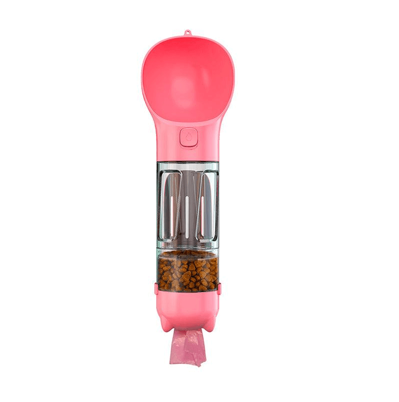 Com a função exclusiva 4 EM 1, a garrafa dispenser compacta foi desenvolvida para fornecer água e comida para seu pet. Além disso, conta com um local para armazenar os sacos plásticos utilizados para recolher e descartar os dejetos do seu amiguinho.