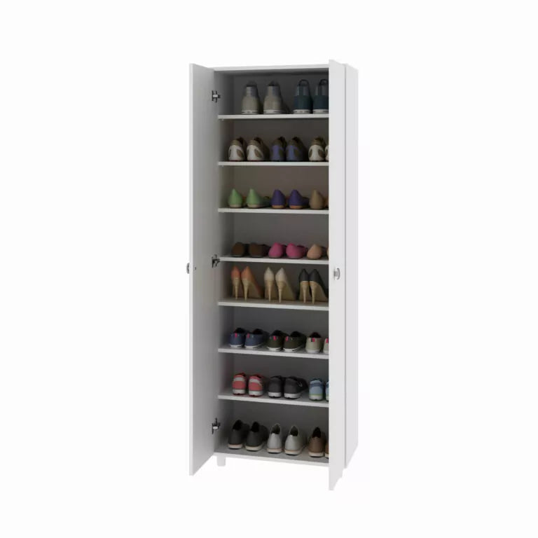 O Armário MULTIUSO AM3108 possui 2 portas e 7 prateleiras, oferecendo muito espaço para organizar e guardar objetos de maneira prática e eficiente.