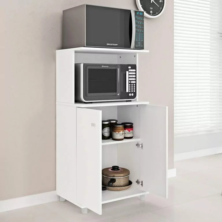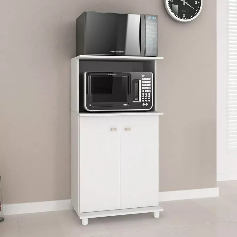 Ele tem 2 portas e espaço para colocar o forno e o microondas, além da estrutura em MDP resistente e acabamento em pintura UV. Garanta a sua e tenha um balcão duplo para forno e microondas que vão deixar sua cozinha mais moderna.
