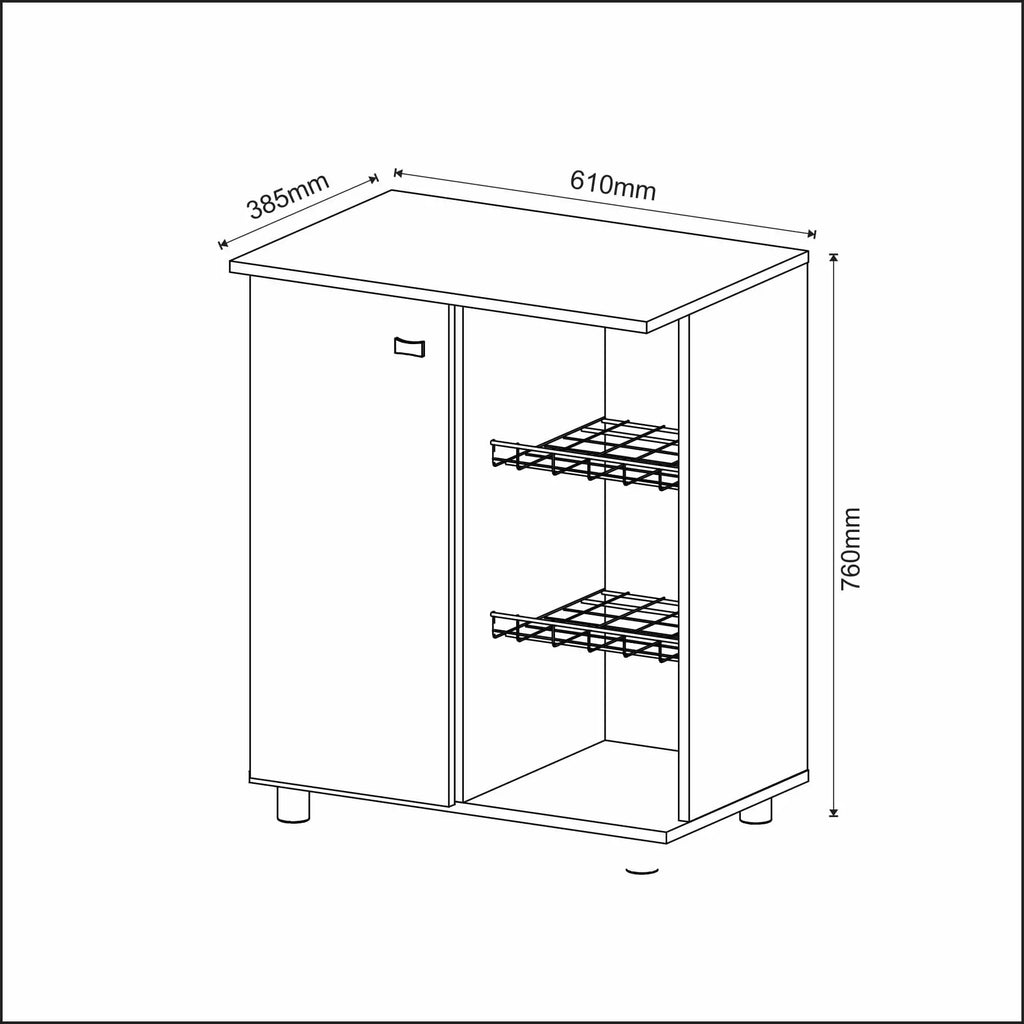 Fabricado em MDP, conta com 1 porta com 1 prateleira interna e 2 prateleiras aramadas para armazenamento de frutas, além do revestimento em BP Antiriscos para uma limpeza fácil.