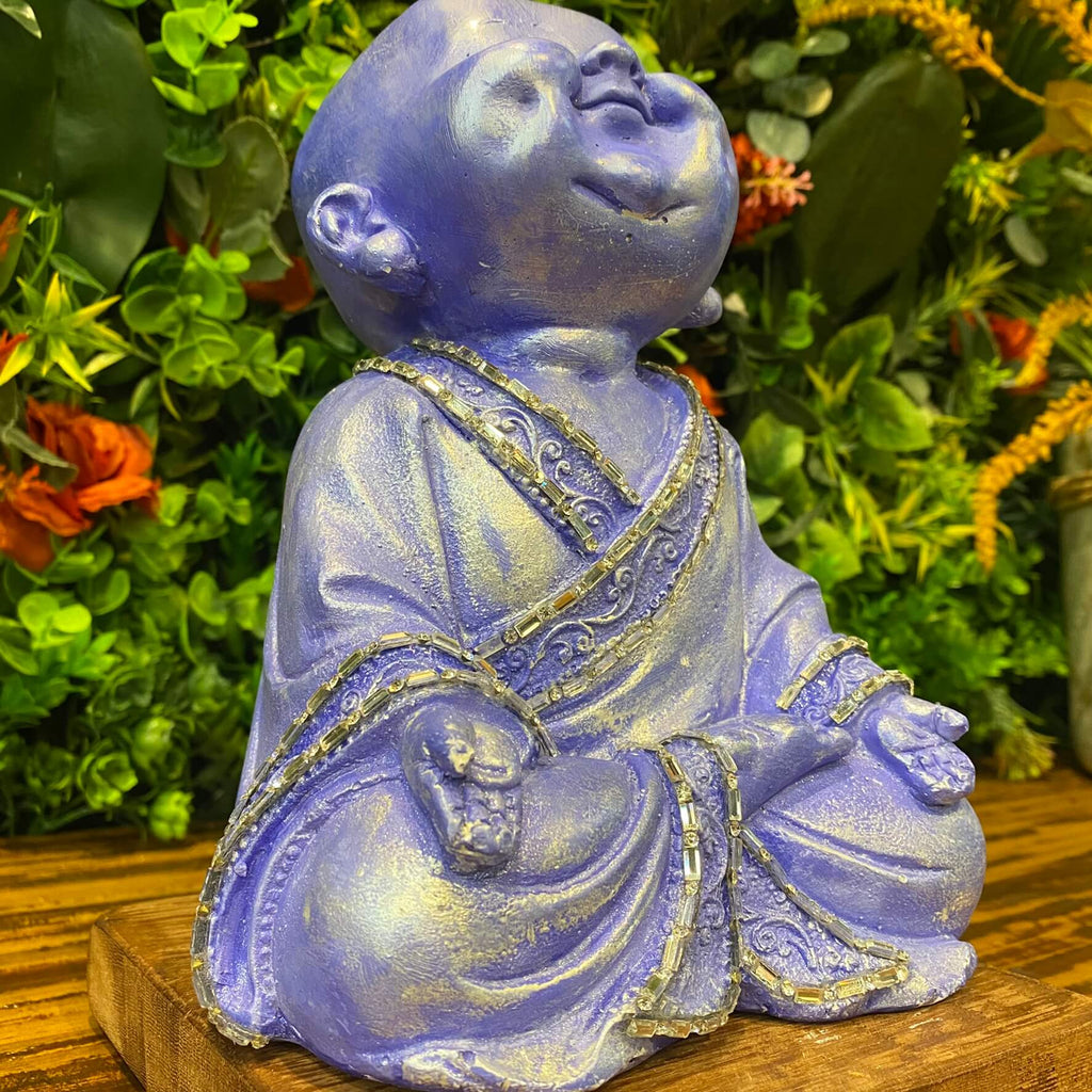 Escultura Buda Gratidão Sorridente Lilás - Tora Design