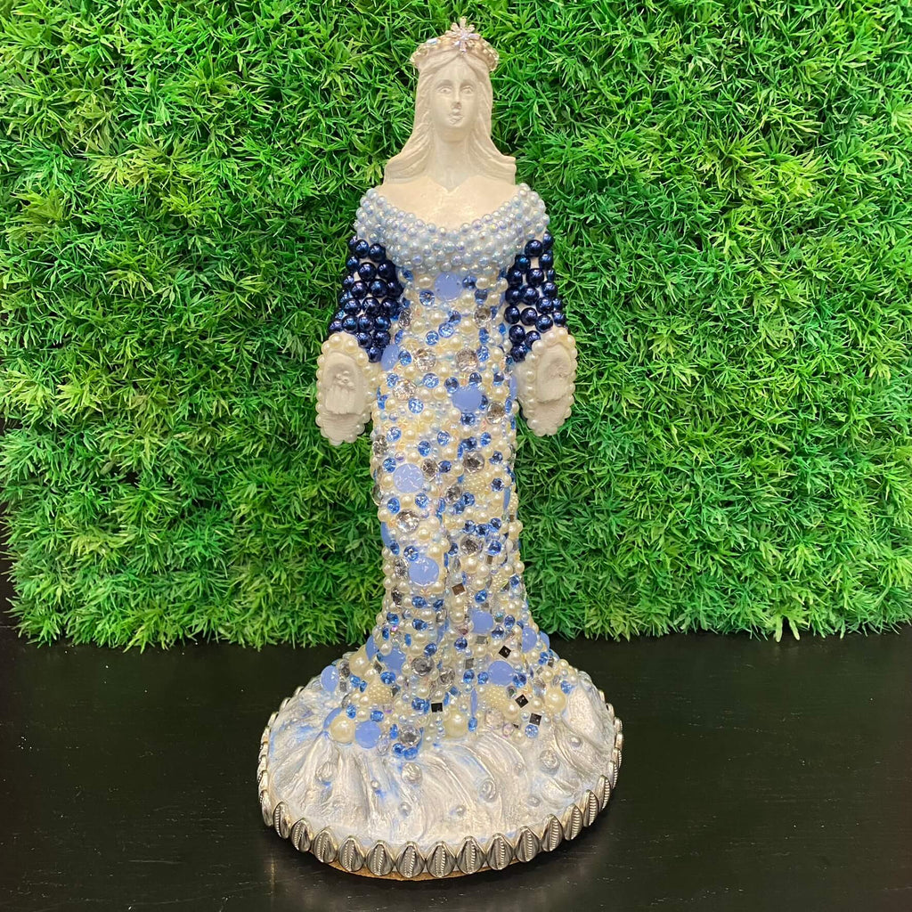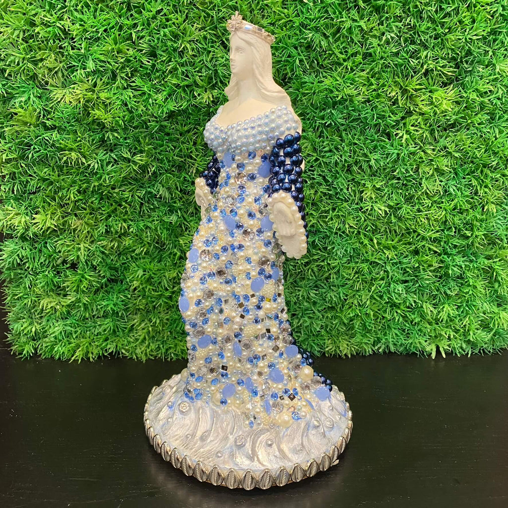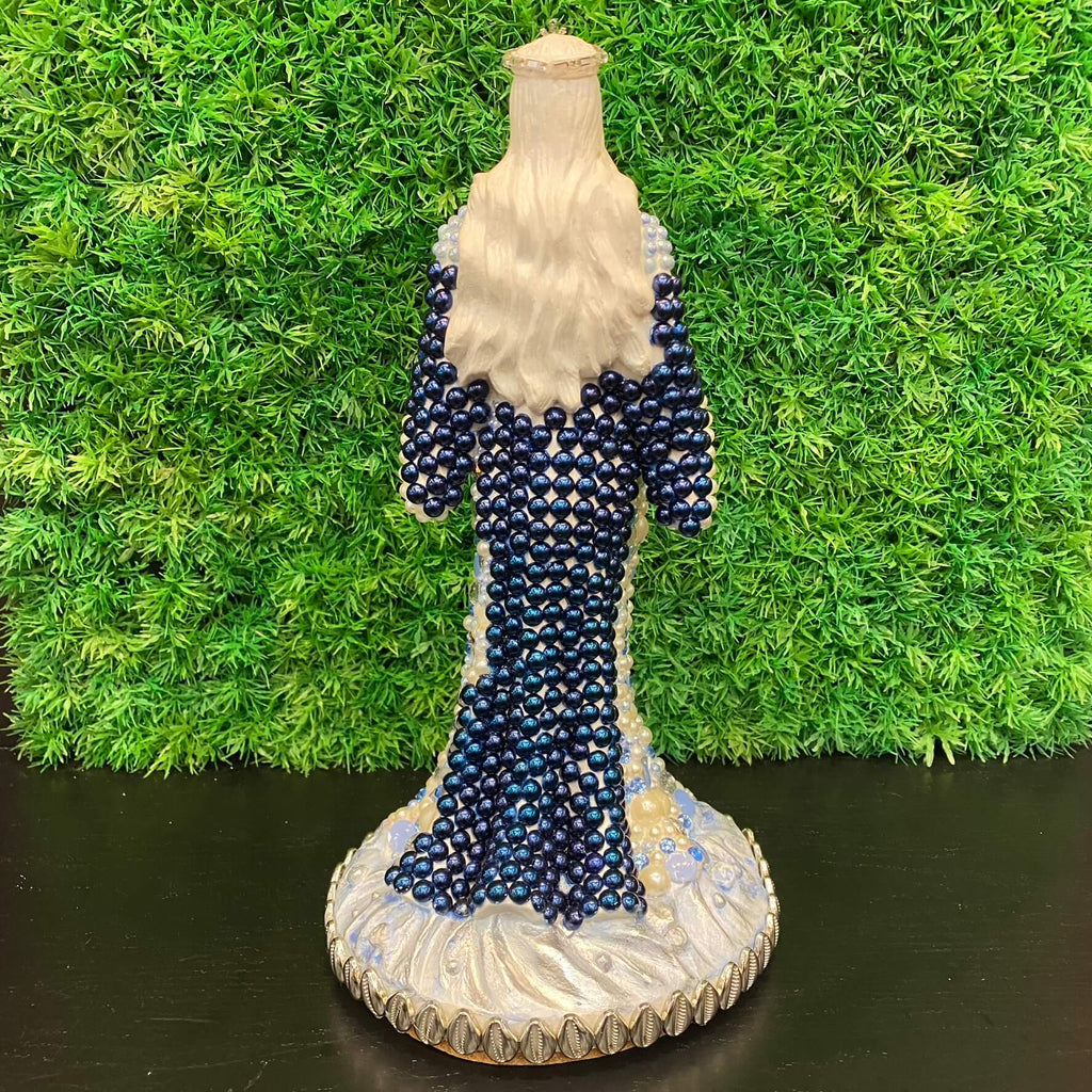Esta charmosa escultura Iemanjá com pérolas da Tora Design é uma obra linda que combina perfeitamente beleza e significado.