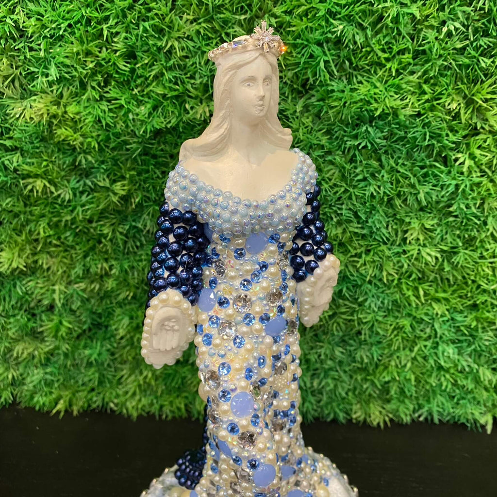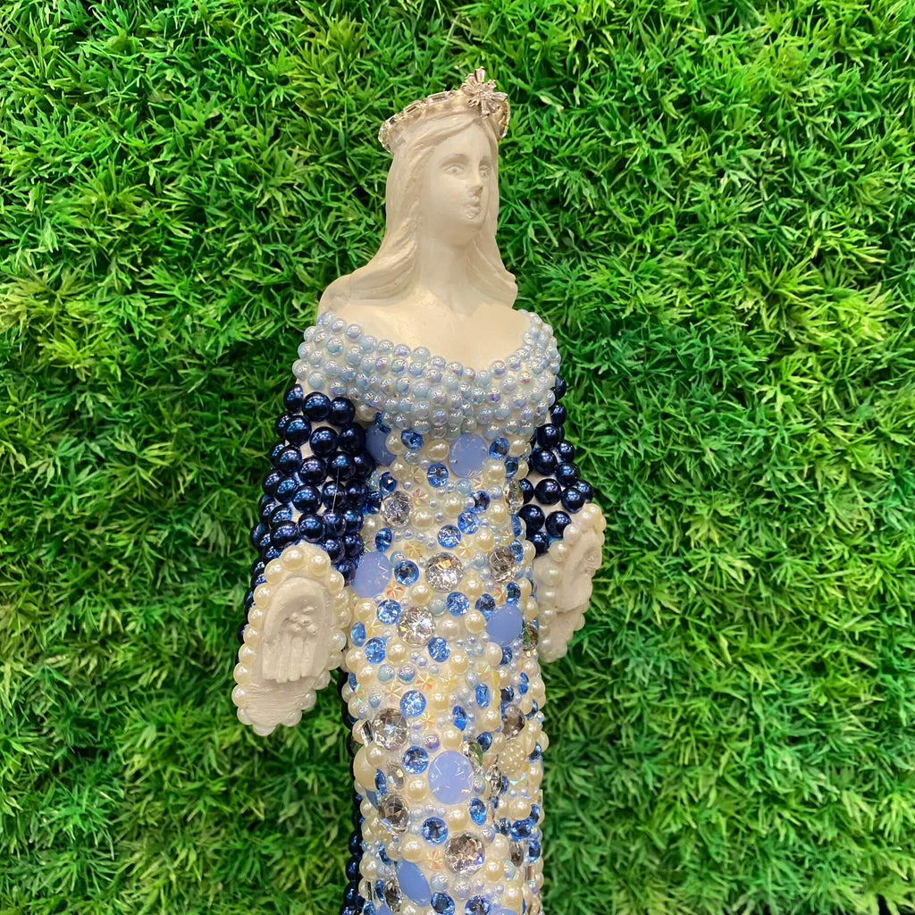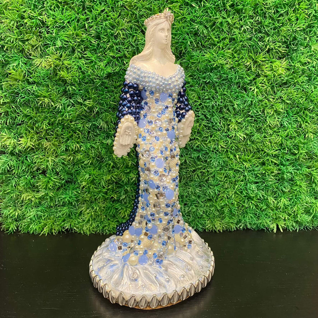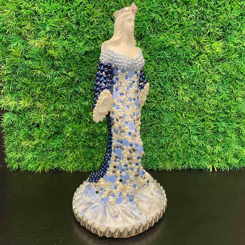 Esta charmosa escultura Iemanjá com pérolas da Tora Design é uma obra linda que combina perfeitamente beleza e significado.