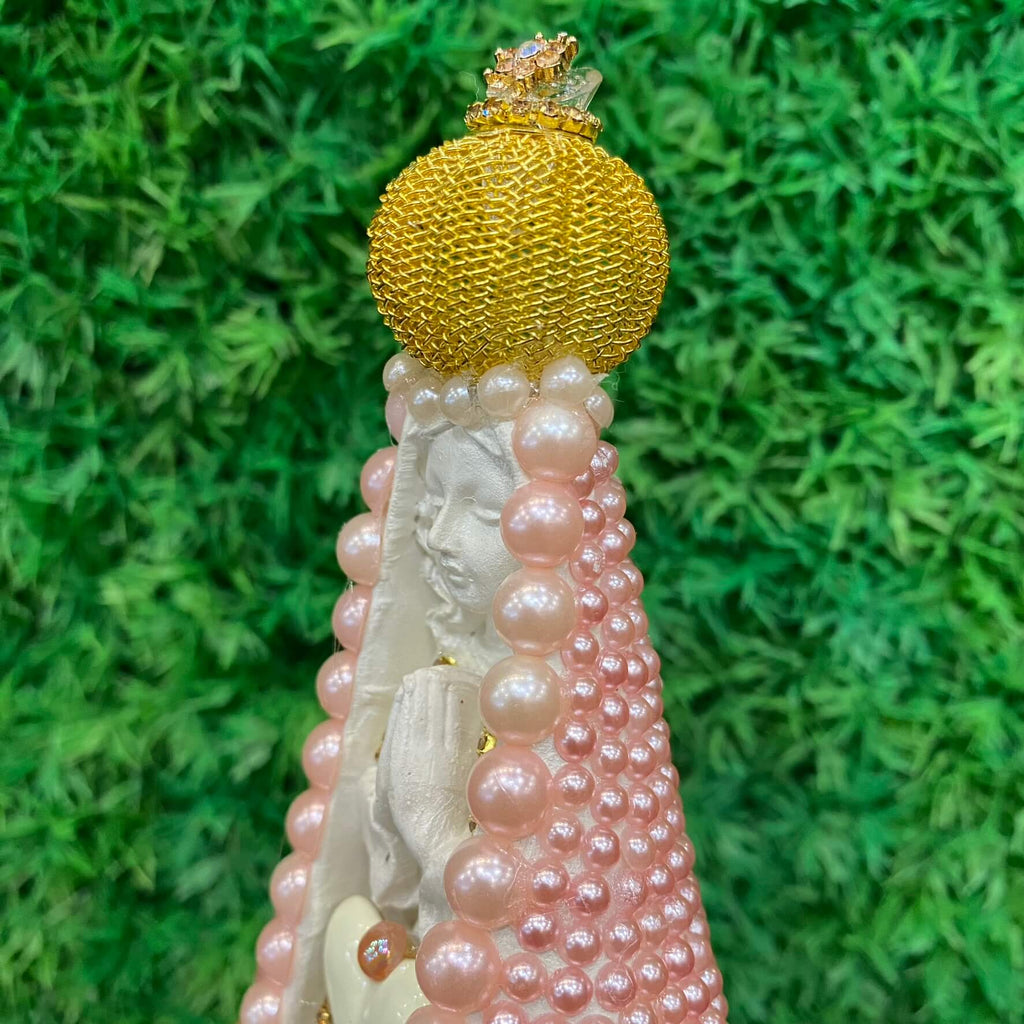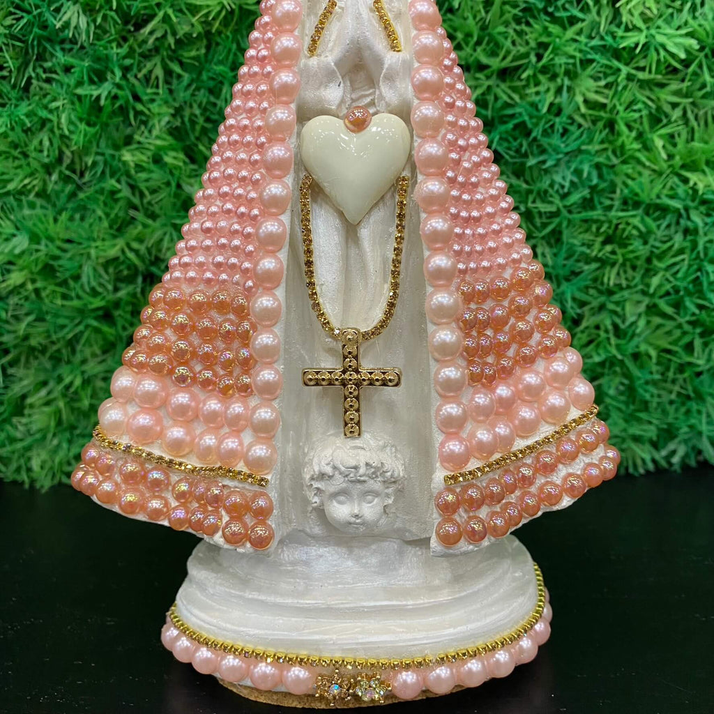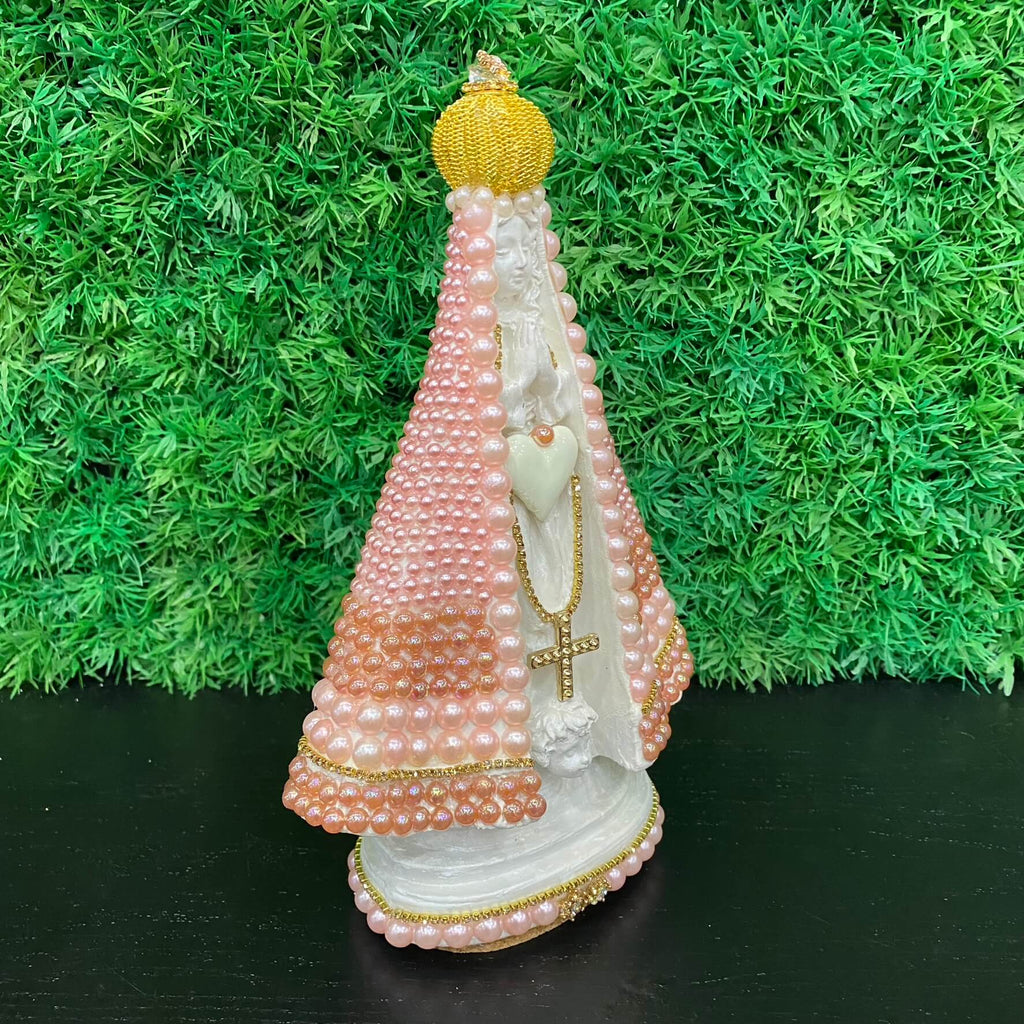 A Escultura Nossa Senhora com Pérolas Rose da Tora Design é a escolha perfeita para decoração de um lar clássico.